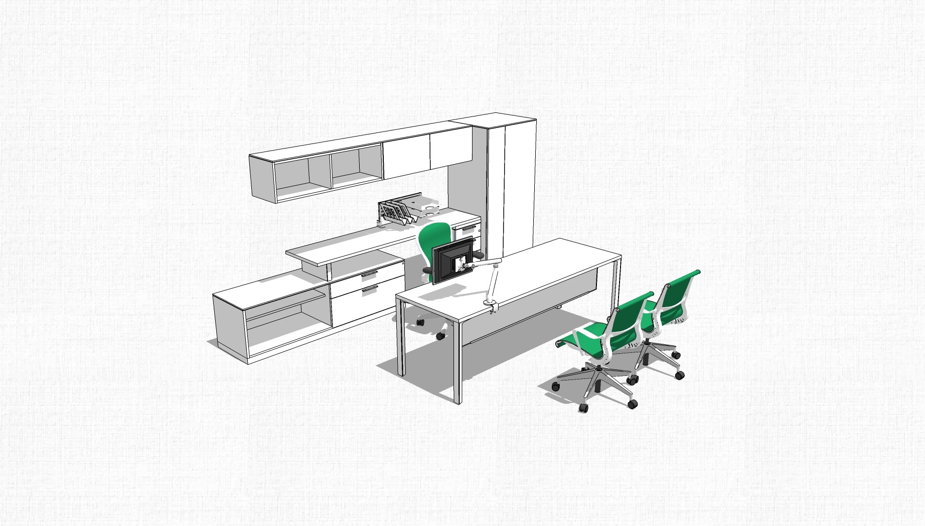 现代白色简约班台桌草图大师模型,班台桌su模型下载