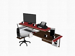 现代班台桌su模型,班台桌sketchup模型下载