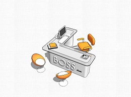现代简约老板桌su模型,老板桌skp模型下载