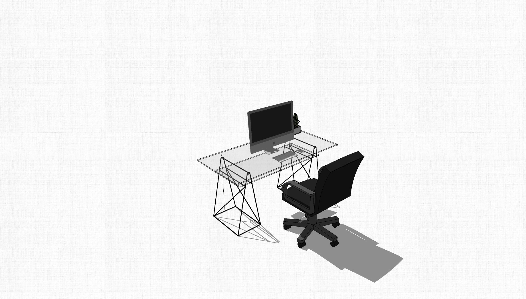 现代简约玻璃办公桌草图大师模型,办公桌skp模型下载