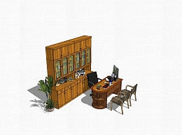 现代老板桌文件柜组合su模型,老板桌文件柜组合skp模型下载