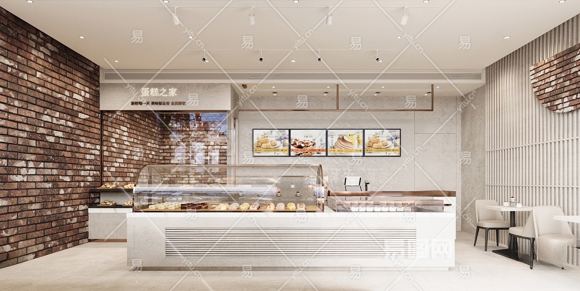 侘寂蛋糕店 蛋糕货柜 蛋糕甜品广告牌 餐桌椅