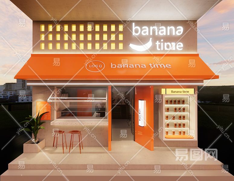 现代奶茶店门头门面 餐饮