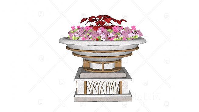 欧式砂岩花钵SU模型下载_sketchup草图大师SKP模型