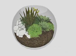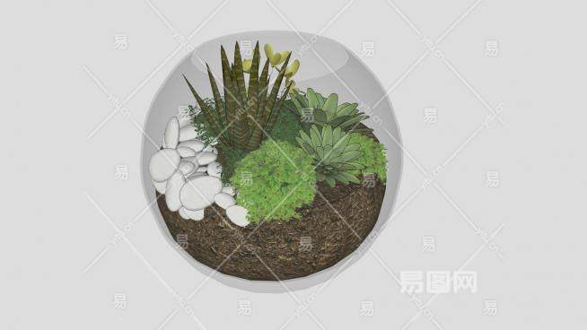 装饰圆形玻璃盆栽SU模型下载_sketchup草图大师SKP模型