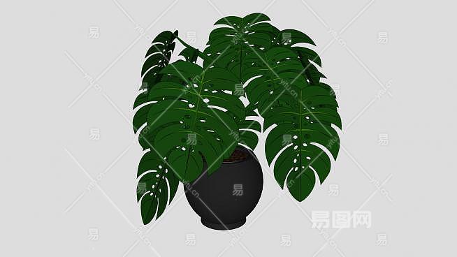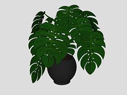 盆景龟背竹SU模型下载_sketchup草图大师SKP模型