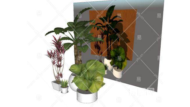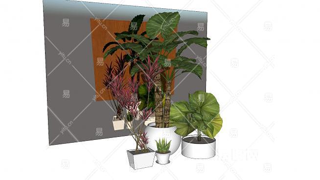 现代观叶植物盆栽系列SU模型下载_sketchup草图大师SKP模型
