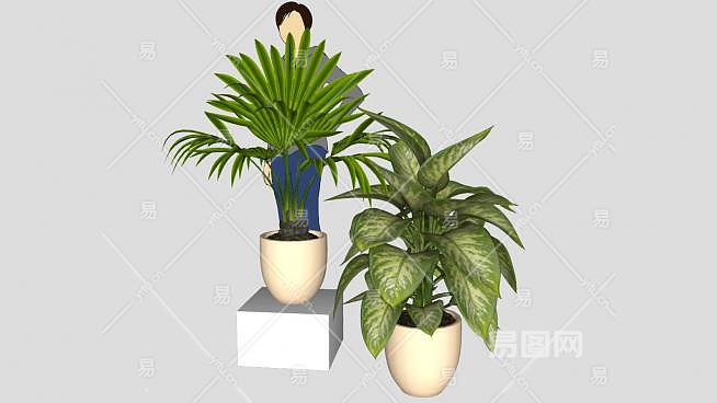 陶瓷花盆盆栽植物SU模型下载_sketchup草图大师SKP模型
