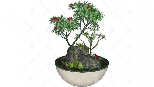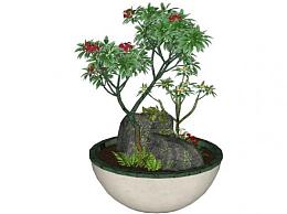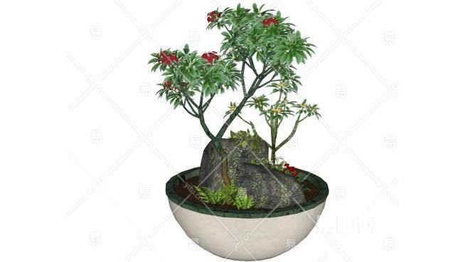 山水花盆盆景植物SU模型下载_sketchup草图大师SKP模型