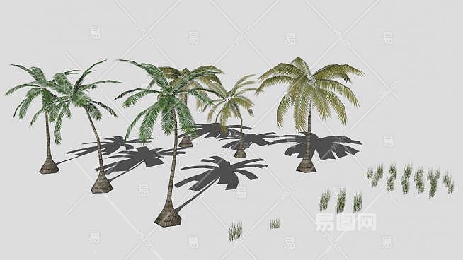 多棵棕榈科椰子树SU模型下载_sketchup草图大师SKP模型