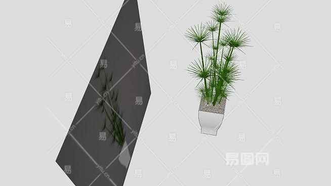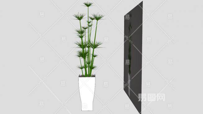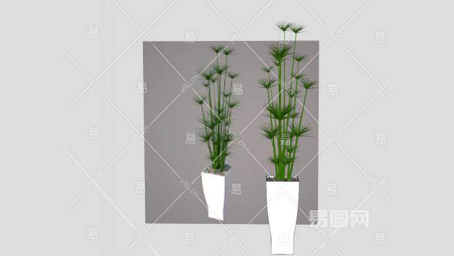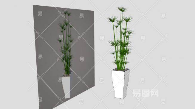 纸莎草植物瓷盆盆栽SU模型下载_sketchup草图大师SKP模型