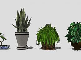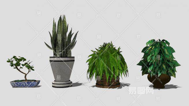 中式花盆植物盆栽SU模型下载_sketchup草图大师SKP模型