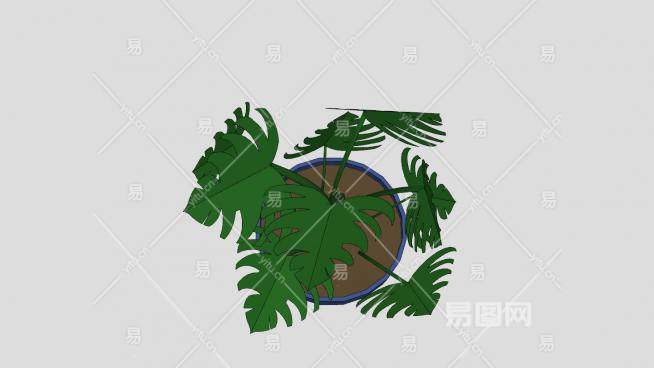 龟背竹盆栽植物SU模型下载_sketchup草图大师SKP模型