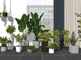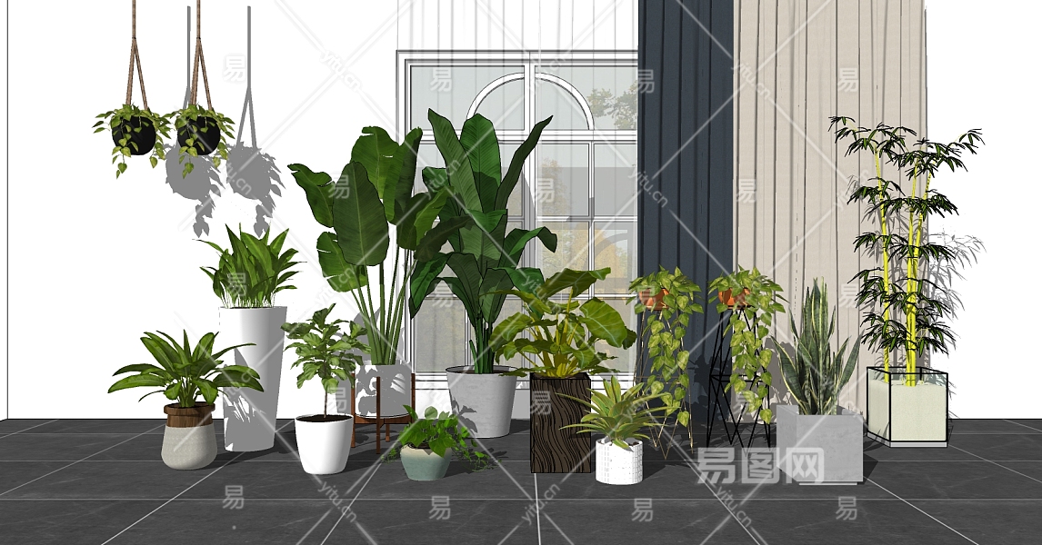 04现代绿植,盆栽,花盆,植物芭蕉叶竹子大叶植物花架吊篮su草图模型下载