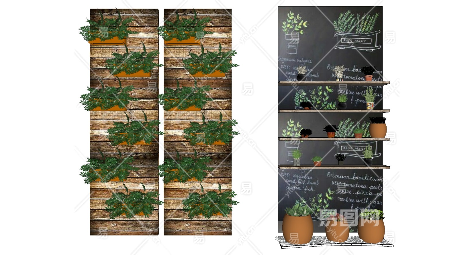 08墙饰花架阳台植物su草图模型下载