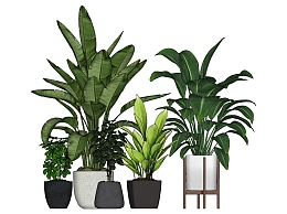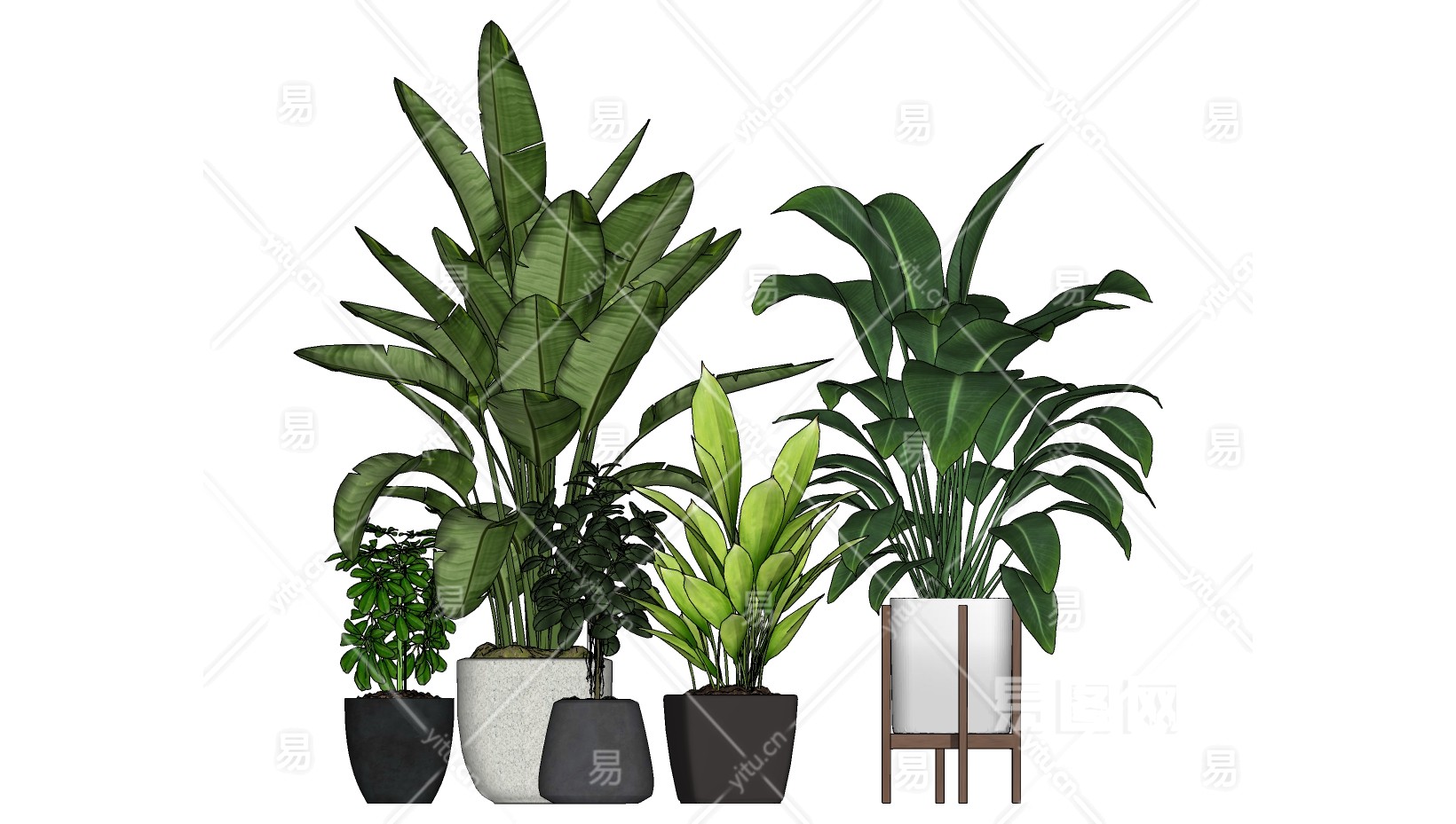 芭蕉 装饰景观植物 盆景组合 盆栽su草图模型下载