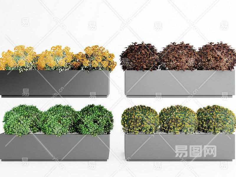 现代植物盆栽花盆花箱灌木
