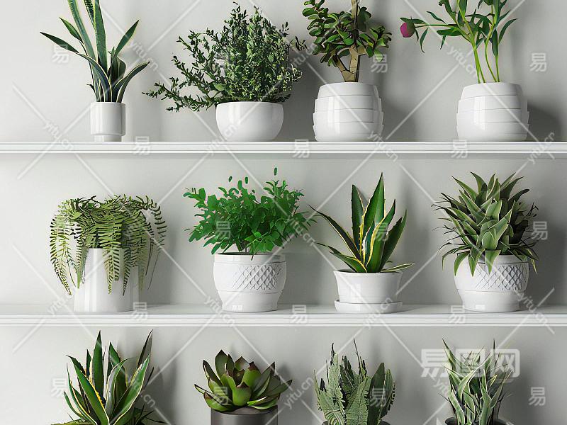 现代植物盆栽组合