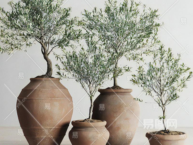 现代土陶罐盆栽