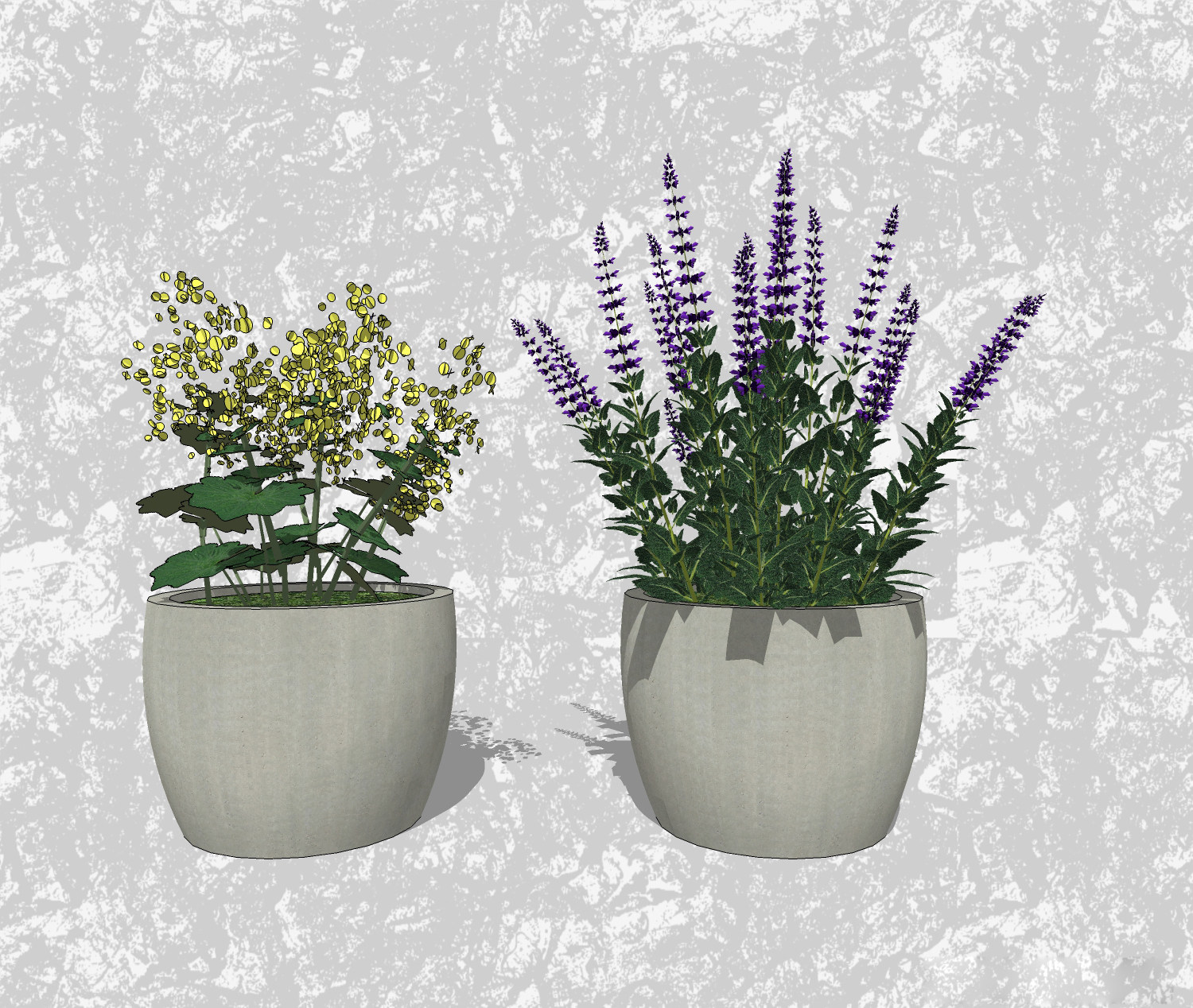 狭苞橐吾盆栽草图大师模型,飞燕草盆栽sketchup模型下载