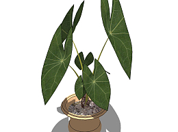 红苞喜林芋盆栽草图大师模型,手绘绿植sketchup模型下载