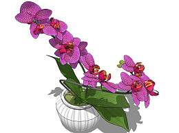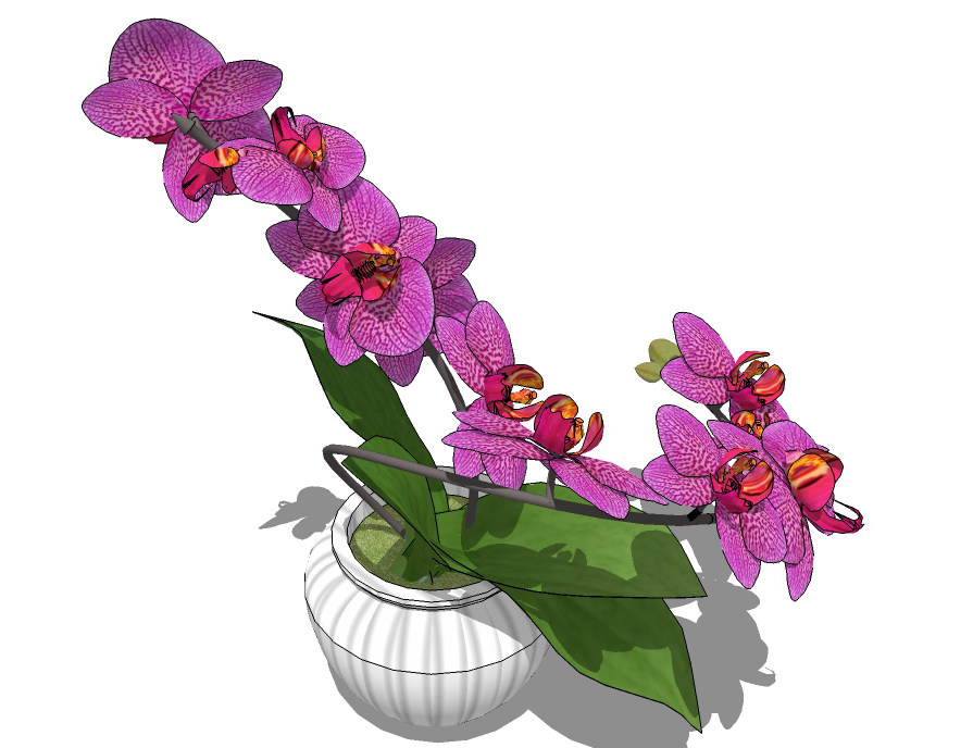 蝴蝶兰盆栽草图大师模型,手绘绿植sketchup模型下载