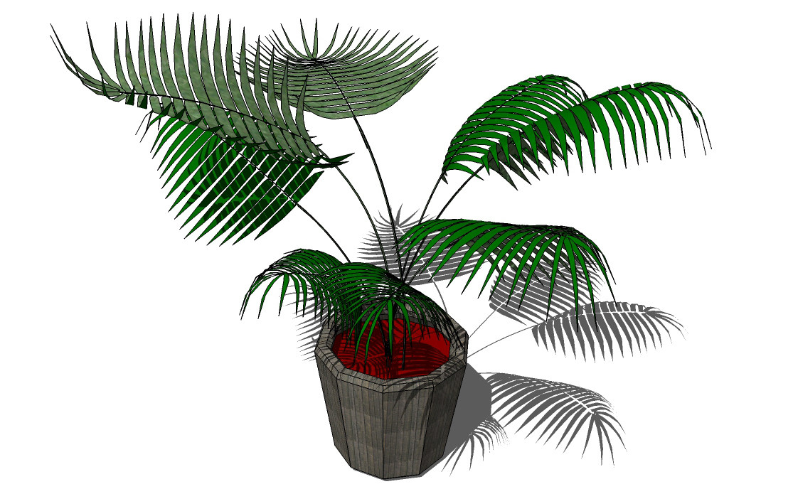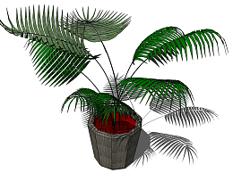 散尾竹盆栽草图大师模型,手绘绿植sketchup模型下载