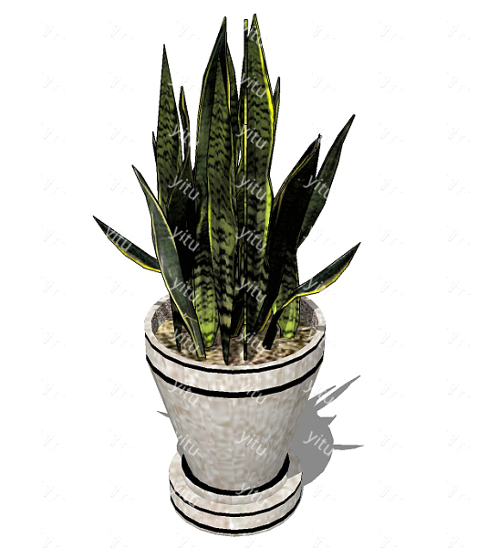 虎尾兰盆栽sketchup模型,手绘绿植草图大师模型下载