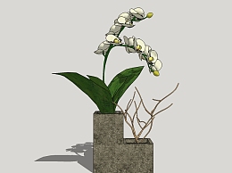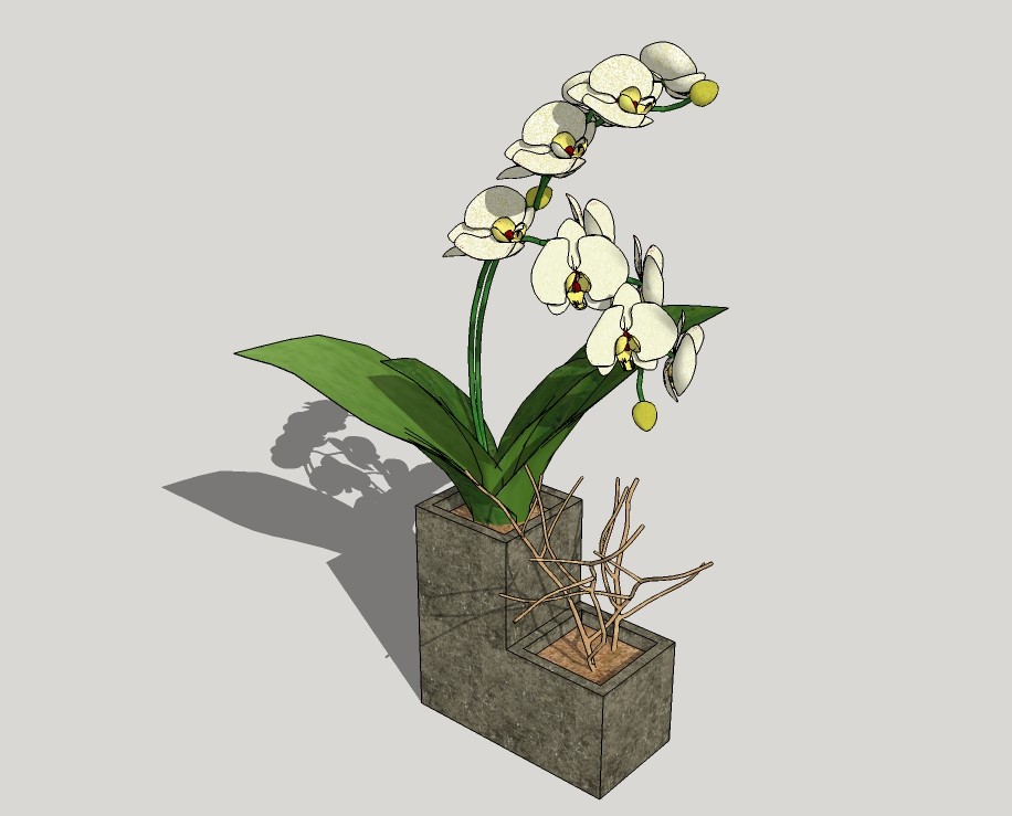 蝴蝶兰植物盆栽草图大师模型,盆栽蝴蝶兰sketchup模型