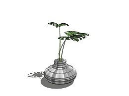 植物盆栽 sketchup模型,龟背竹盆栽SU模型下载