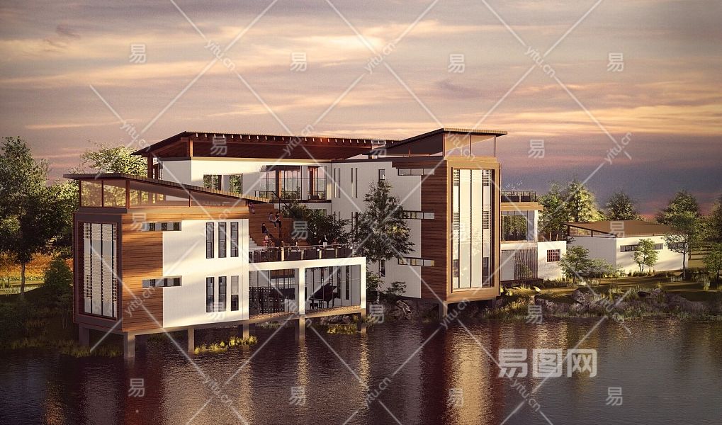 新中式游客服务中心建筑 滨水公园景区 展览馆 小公建 咖啡厅 驿站