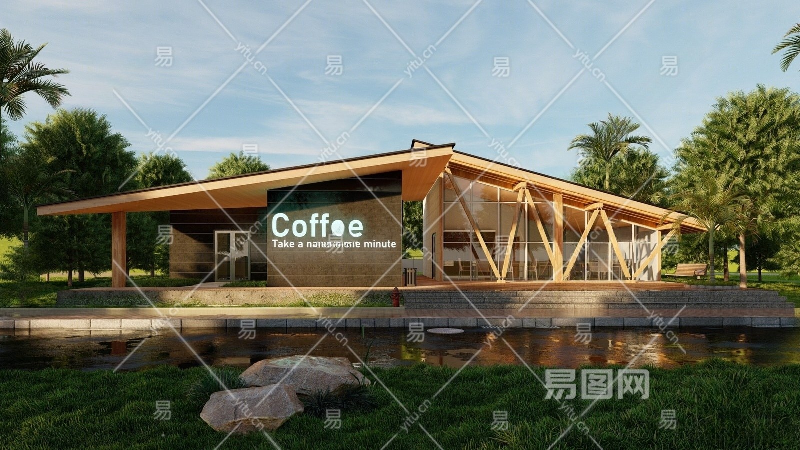 现代咖啡厅建筑 书吧 会议厅 酒吧