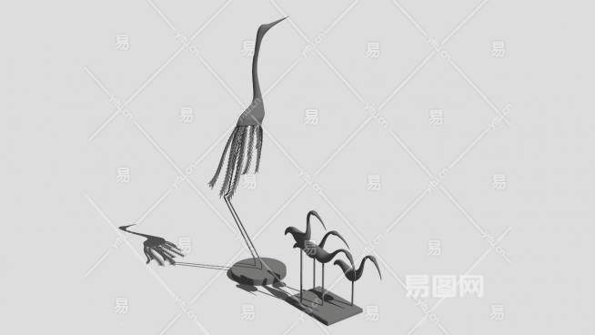 天鹅艺术品雕像SU模型下载_sketchup草图大师SKP模型