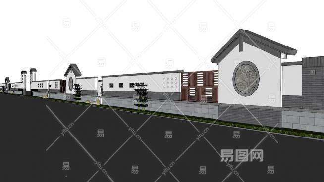 中式墙面su模型下载_sketchup草图大师SKP模型
