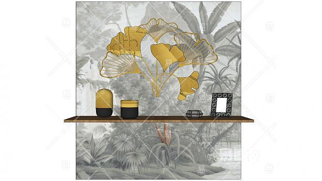 轻奢银杏叶背景墙su模型下载_sketchup草图大师SKP模型
