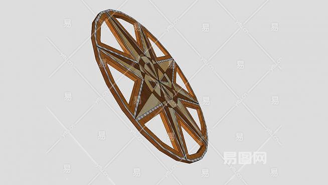 镶嵌木轮子墙饰SU模型下载_sketchup草图大师SKP模型