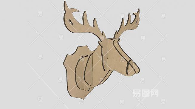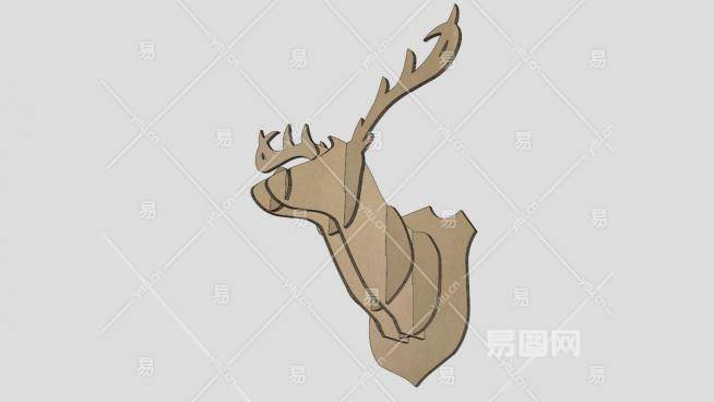 鹿挂件装饰墙壁SU模型下载_sketchup草图大师SKP模型
