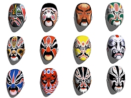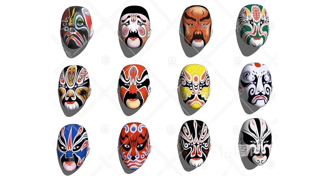 (13)中式京剧脸谱墙饰挂饰挂件su草图模型下载