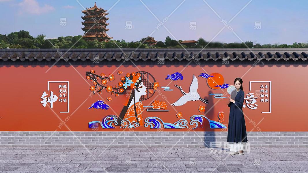 新中式国风网红打卡墙 国潮网红打卡墙 文化景墙 直线 围墙