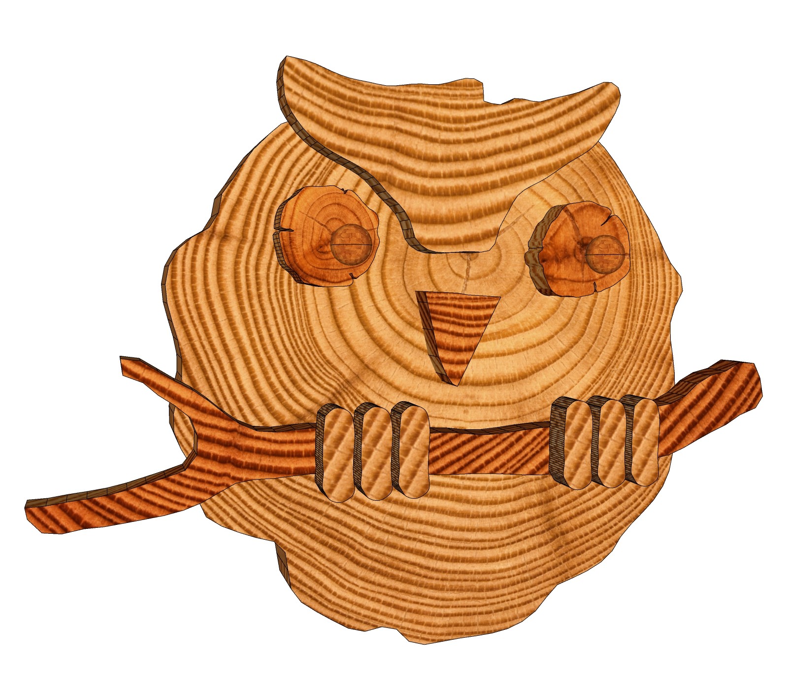 现代实木猫头鹰墙饰su模型,摆件草图大师模型下载