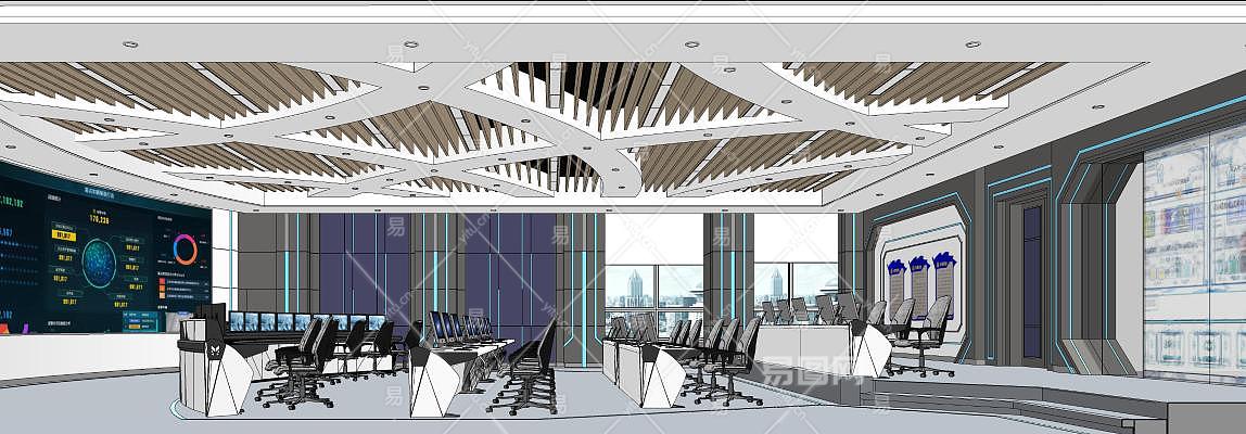 现代指挥大厅空间SU模型下载