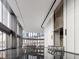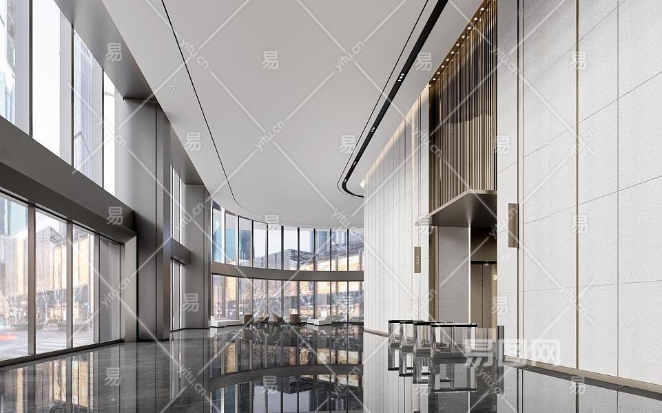 现代公司大堂 办公大厅 电梯厅 闸机 沙发茶几组合