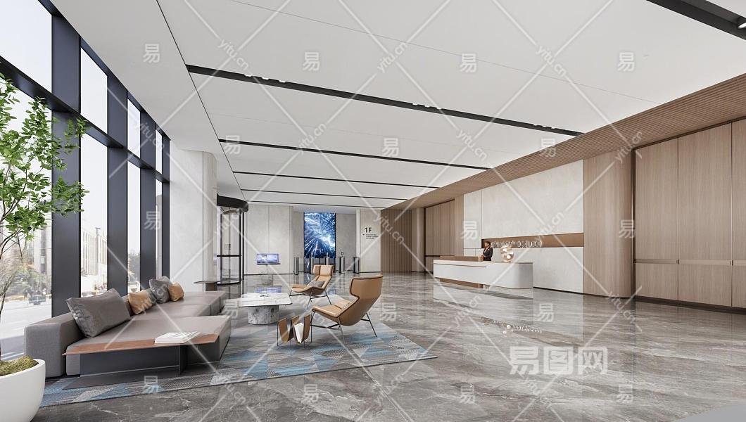 现代公司大堂 办公大堂 办公沙发组合 电梯厅 前台 酒店大堂