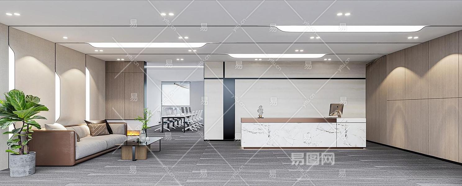 现代公司大堂 办公室前台 接待台 休息区 会议室 创意公司前台 服务台 公司沙发茶几