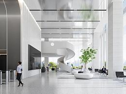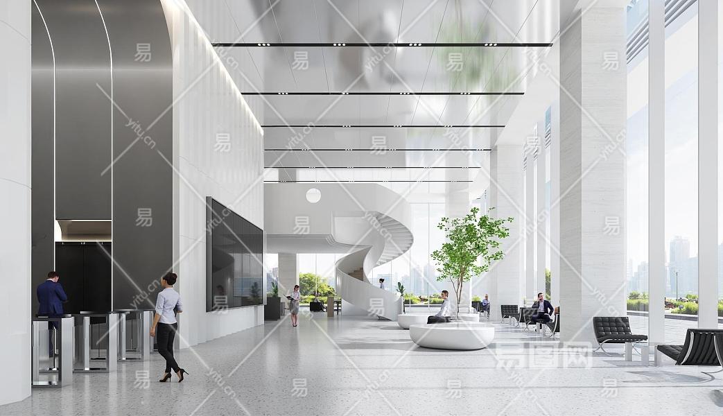 现代公司大堂 接待区 洽谈区 电梯厅 旋转楼梯
