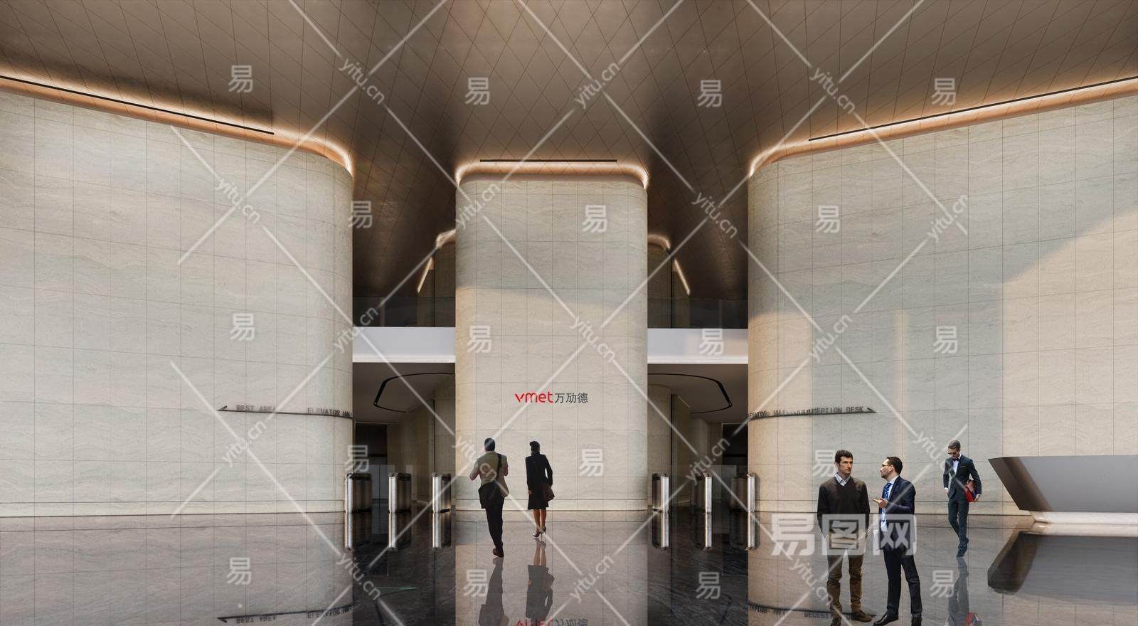 现代公司总部办公大堂 大堂 公区大堂 电梯厅