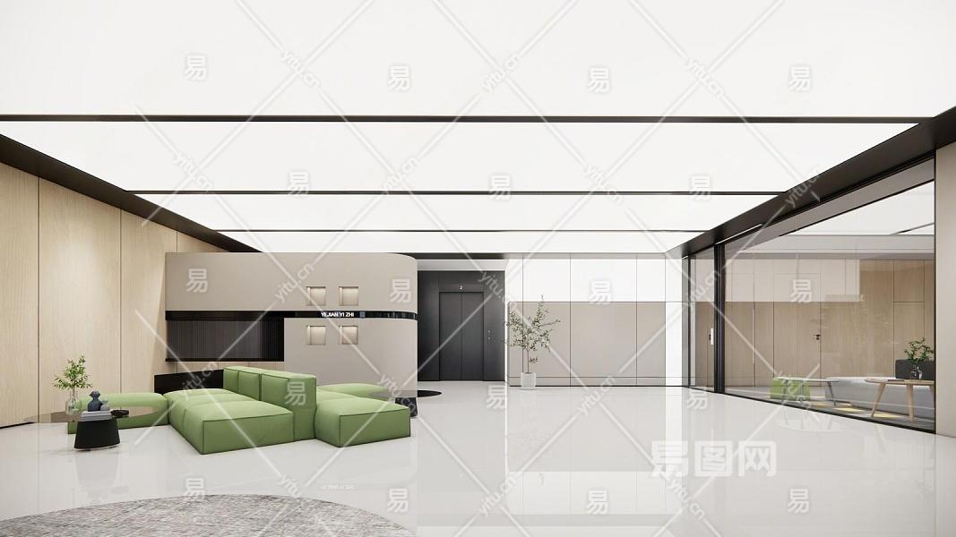 现代办公大厅 休闲沙发 组合沙发 绿植盆栽