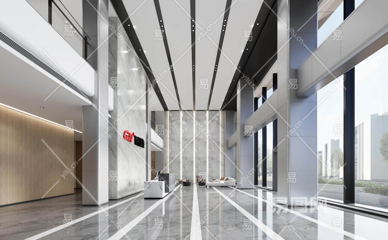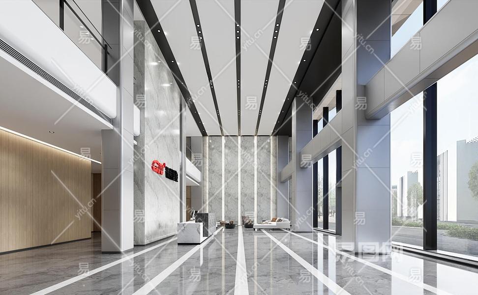 现代办公大堂 接待大堂 办公前台 休息区