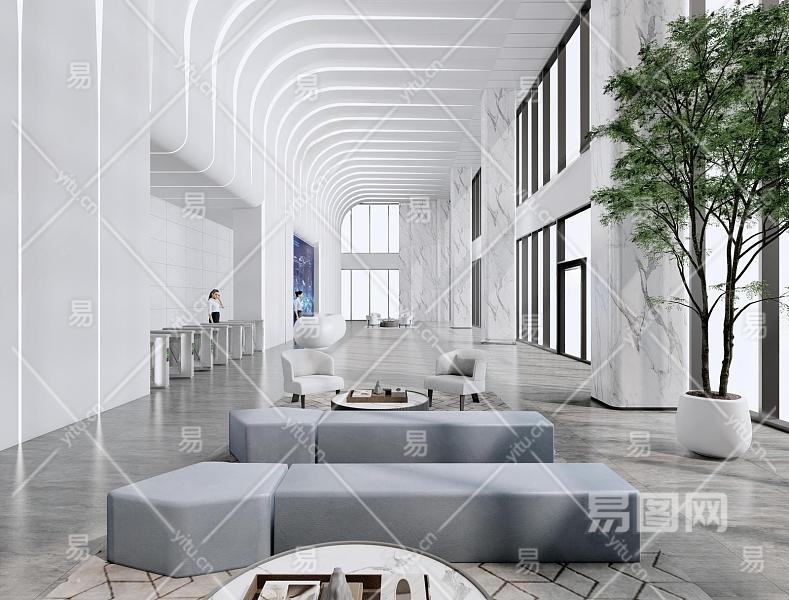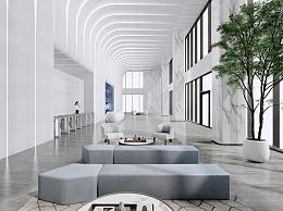 现代办公极简大堂 电子屏 沙发茶几组合