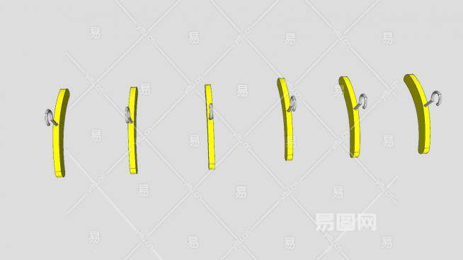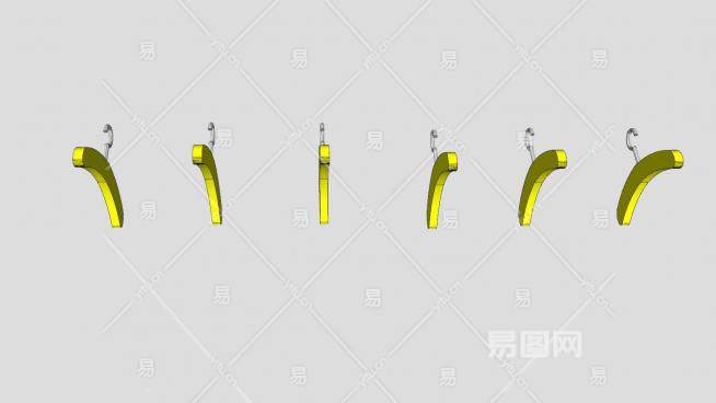 6个黄色衣架SU模型下载_sketchup草图大师SKP模型
